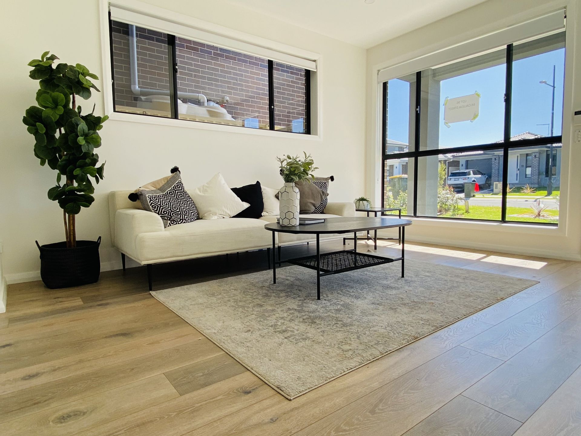 •Spacious living area with elegant timber flooring, perfect for relaxation and entertaining