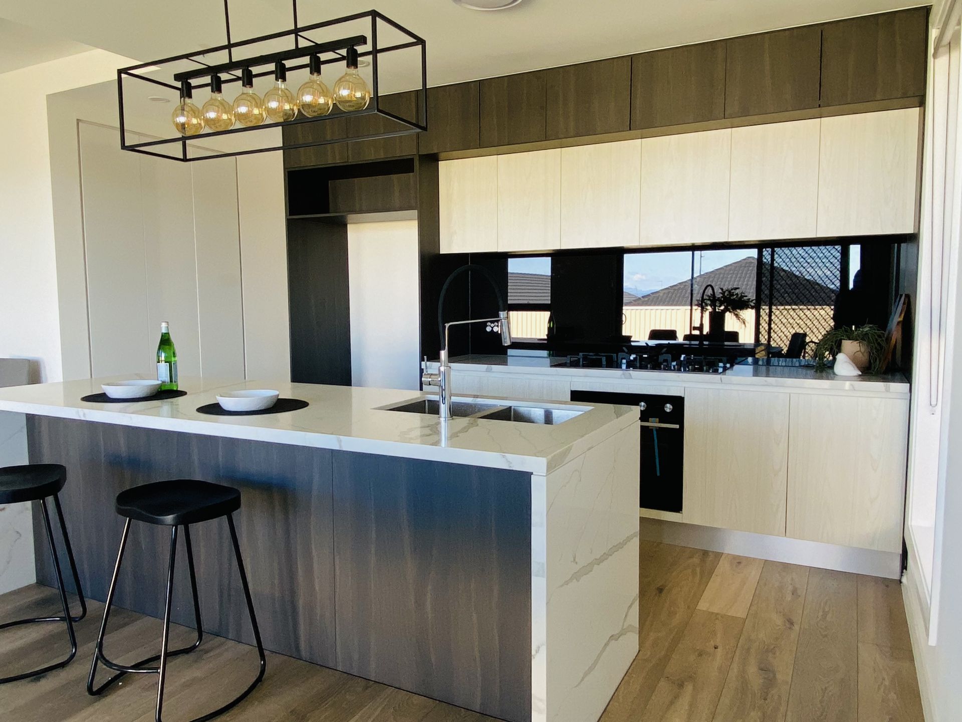 •Modern kitchen featuring 40mm benchtop, ample storage & premium stainless-steel appliances including oven, dishwasher & rangehood