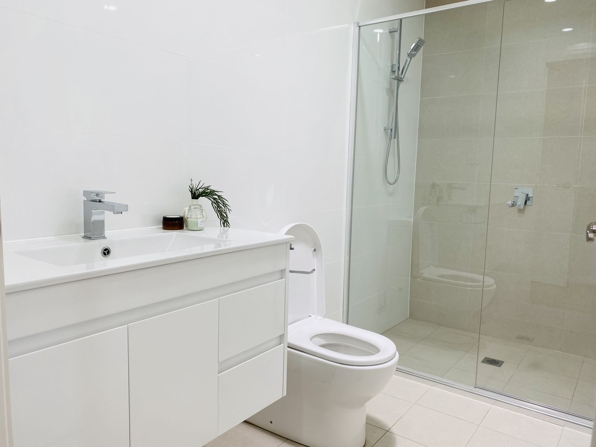 •Stylish fully tiled bathrooms with semi-frameless shower screens